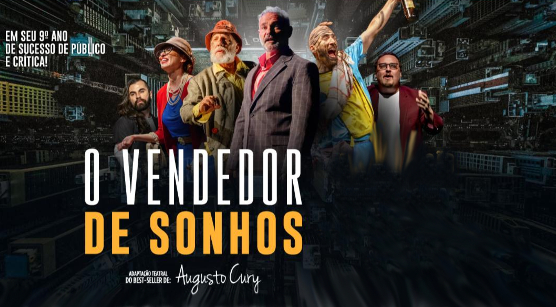 O livro O Vendedor de Sonhos já foi traduzido para mais de 60 idiomas e também virou filme – e é a primeira obra de Augusto Cury (o psiquiatra mais lido no mundo atualmente) a receber uma adaptação para o teatro. “Ver os atores interpretando no palco os personagens que eu construí nas mais diversas situações estressantes em que eles passaram, levando o espectador a fazer uma viagem para dentro de si mesmo para encontrar o mais importante endereço que poucos encontram, o endereço em sua própria mente, é de fato um grande prazer”, conta Cury.