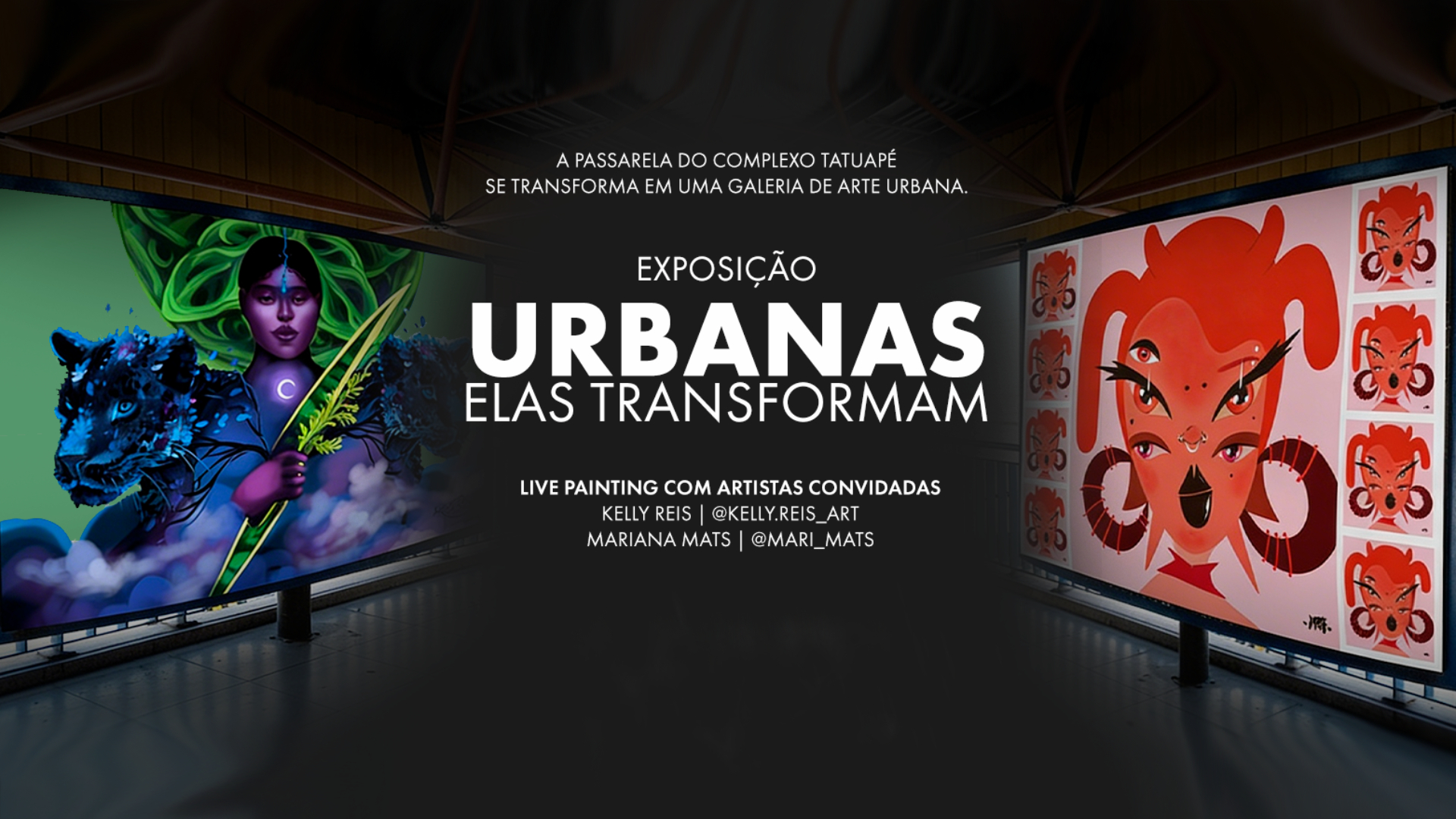As artistas plásticas Kelly Rios e Mariana Mats assinam oito dos painéis da exposição, trazendo linguagens inspiradas na arte urbana, identidade feminina e diversidade cultural.
