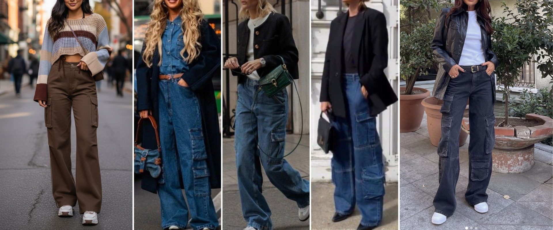 ​As calças cargo evoluíram. Em 2026, os bolsos laterais são mais planos e discretos, e o tecido jeans ganha acabamentos acetinados ou lavagens marmorizadas. As cores vão além do azul, como o cinza chumbo, cáqui e o marrom tabaco (cor febre da temporada).