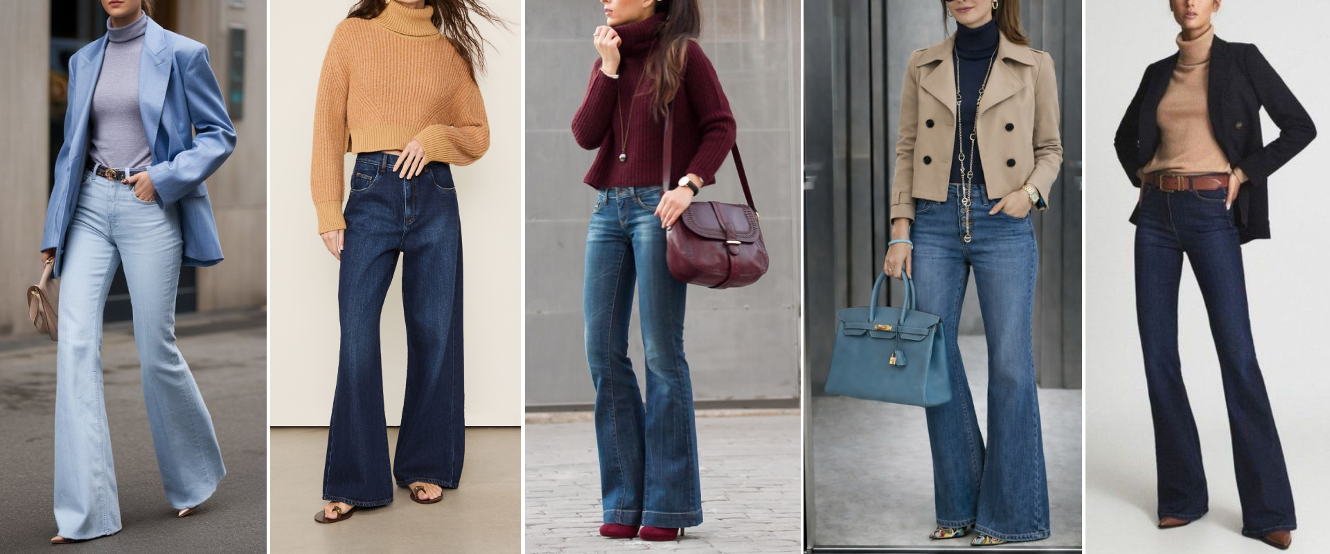As calças bootcut e bocas de sino discretas reaparecem como alternativa intermediária entre a calça reta e as pernas extremamente largas.